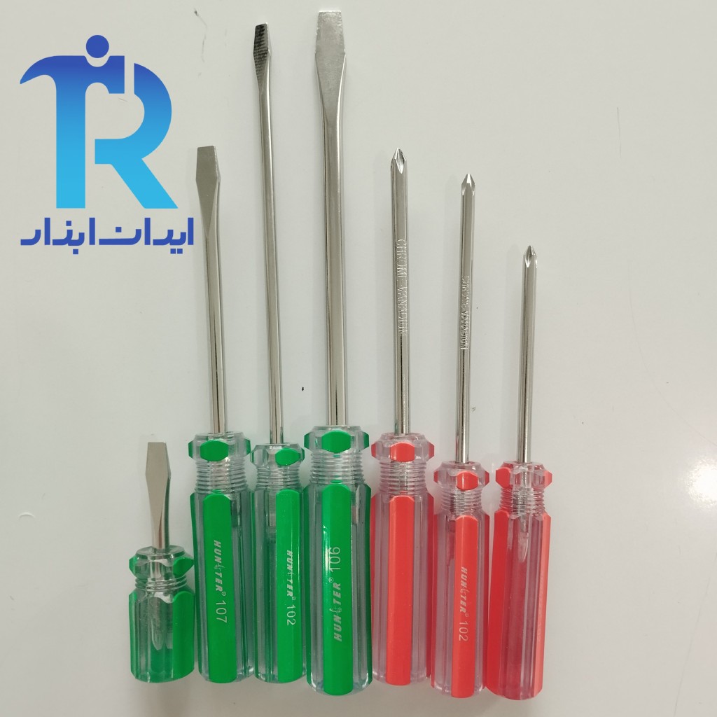 مجموعه پیچ گوشتی 7 عددی هانتر HUNTER شامل 3 چهارسو و 4 دوسو در سایزهای مختلف، مناسب کارهای تعمیراتی، خانگی و کارگاهی با کاربری متنوع است.